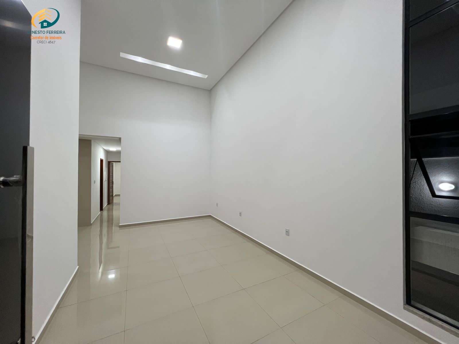 ✅ Forro 100% em placas de gesso, com detalhes em sancas e spots decorativos. Cortineiros